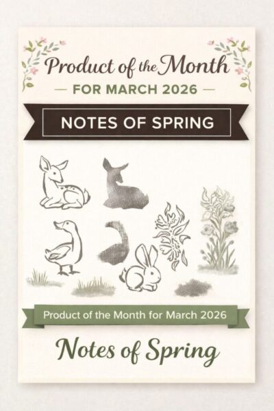 The Product of the Month is a new exclusive product released each month that can be unlocked for just $5 with orders over $75 (after discounts and rewards), but be sure to grab yours quickly — it’s limited to one per customer, only available while supplies last, and can sell out fast! This month is the Notes of Spring Stamp Set.