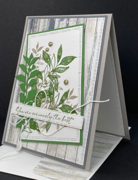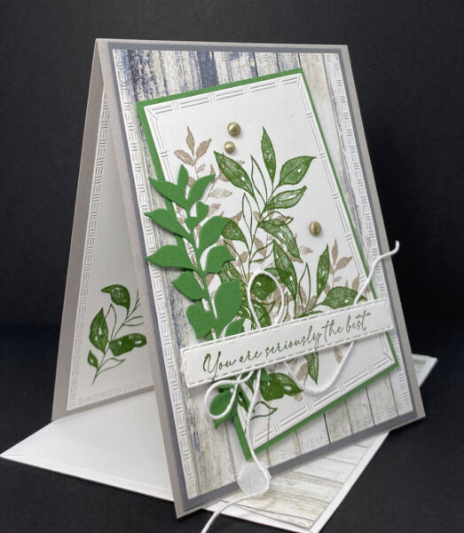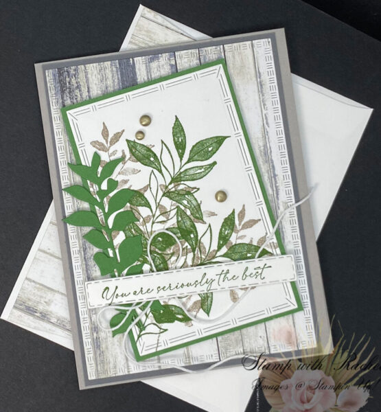 The heartfelt sentiment “You are seriously the best” is featured on a clean Basic White banner that spans across the center of the design, secured with white twine that adds a casual, handcrafted touch. The banner creates a focal point while allowing the beautiful botanical elements to frame the message perfectly. The overall design strikes a wonderful balance between rustic charm and elegant sophistication, making it perfect for expressing appreciation to someone special.