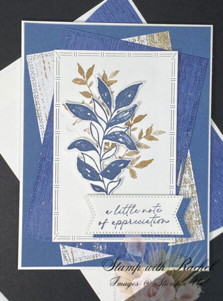 The heartfelt message “a little note of appreciation” is presented on a banner-style element from the Stylish Shapes Dies, making this card perfect for expressing gratitude or acknowledgment. The overall design combines traditional crafting techniques with a modern color palette, resulting in a thoughtful and professionally finished piece that would be meaningful to receive.