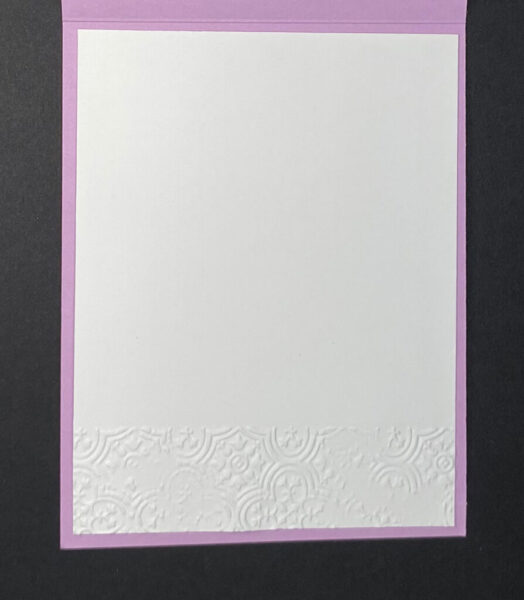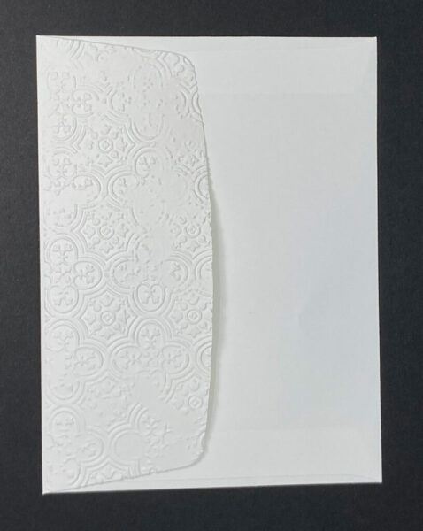 Both the inside card base (lower portion) using Basic White Cardstock and the envelope flap were embossed with the Distressed Tile 3D Embossing Folder.