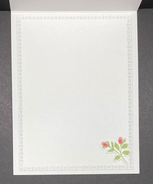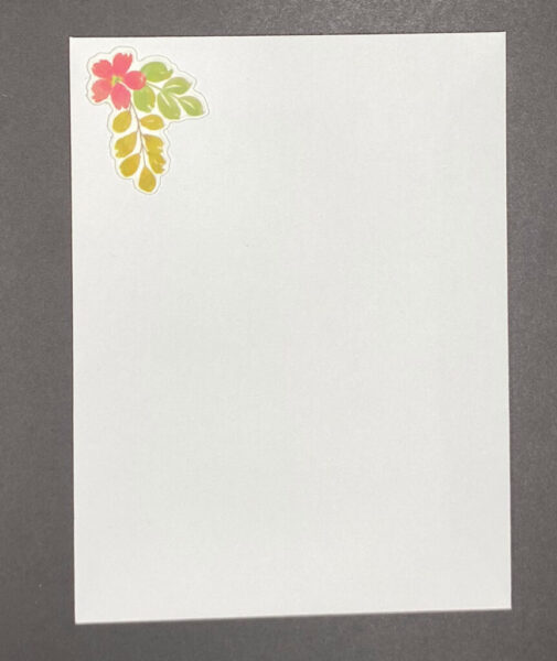 The first layer was created by die-cutting Basic White Cardstock using the largest die from the Textured Notes Dies set. I added matching floral die cuts from the Extraordinary Floral Washi Tape to both the bottom right corner of the card’s interior and the front of the envelope for a cohesive design.