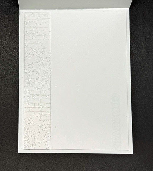 For the card interior, I attached a piece of Basic White Cardstock (5 1/4″ x 4″), added a strip of Basic White (4″ x 1″) embossed with the Exposed Brick 3D Embossing Folder, and included a piece of the same DSP (6″ x 2 1/4″) used on the front.