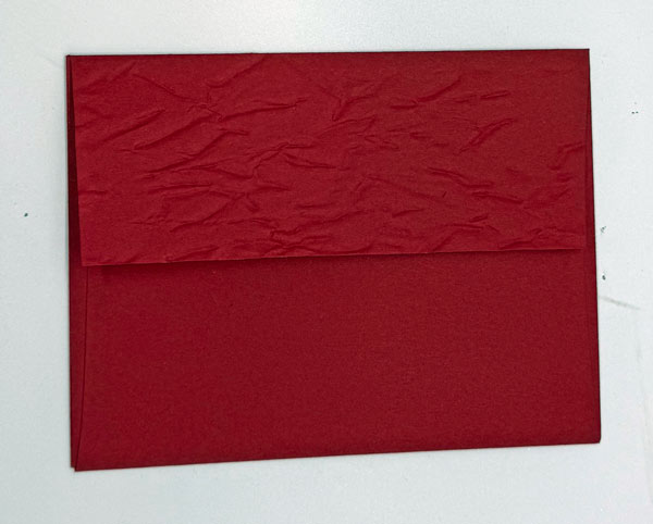 I added a narrow strip of the Beautiful Gallery DSP to the right side of the card’s interior for a coordinated look. For a finishing touch, I embossed the envelope flap using the Old World Papers 3D Embossing Folder, which perfectly complements the vintage aesthetic of the card front.