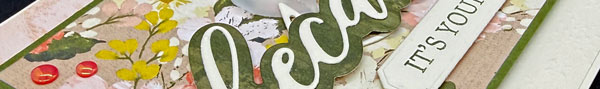 For the final touches, I used the leaf die from the Petals of Beauty Dies to cut Very Vanilla Cardstock and the large sprig die to cut Vellum Cardstock. I placed both above the “because” word, then finished the card with embellishments from the Pearls of Beauty pack.