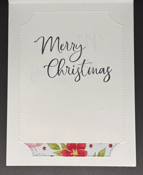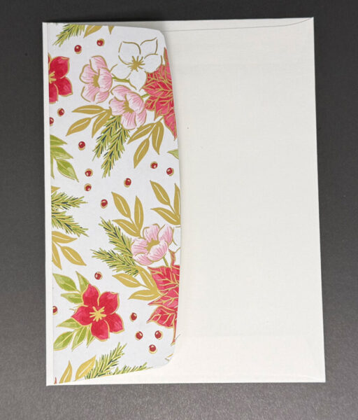 I wanted the inside to feel just as special as the front, so I created a simple yet elegant design that brings everything together beautifully! I added a strip of the same designer paper I used on the front and cut the first layer using the largest die from the Branching Out Dies set. For a coordinating touch, I lined the envelope flap with the same designer paper as well.
