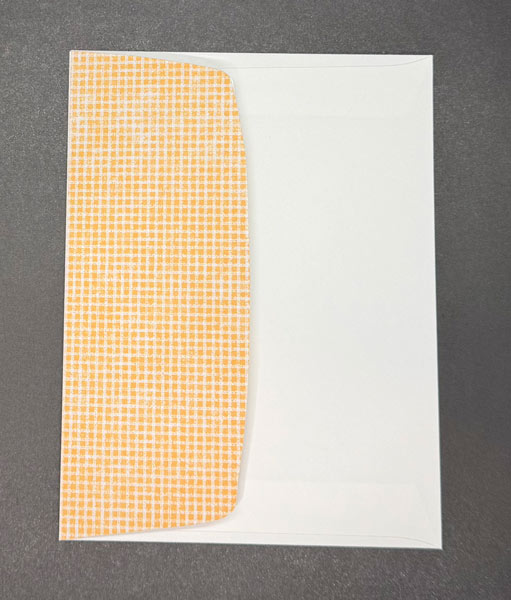 I didn’t want to stop there, so I also dressed up the envelope! I adhered a strip of the matching Designer Series Paper (6″ x 2 1/2″) across the envelope flap, then trimmed off the excess for a clean, polished finish.