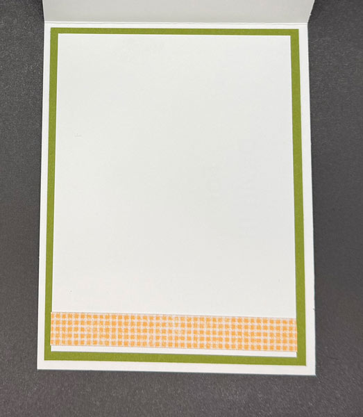 For the inside of my card, I added a layer of Old Olive Cardstock measuring 5 1/4″ x 4″, followed by a layer of Basic White Cardstock cut to 5″ x 3 3/4″. To tie everything together, I attached a thin strip of the same Lovely & Beautiful Designer Series Paper (3 3/4″ x 1/2″) across the white panel.
