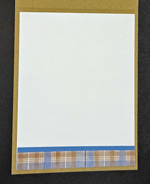 For the card’s interior, layer Basic White Cardstock with the Boho Blue Cardstock and a strip of Timeless Plaid DSP along the bottom. For an extra-special finishing touch, add a piece of the same DSP to the envelope flap and trim it to size!