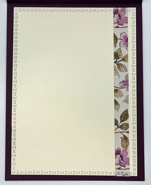 For the inside of my card, I cut Very Vanilla cardstock to 5½” x 4¼” and die-cut it with the largest die from the Textured Notes Dies. Then I added a strip of the Floral Charm DSP to the right side to tie everything together beautifully.