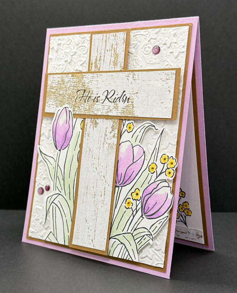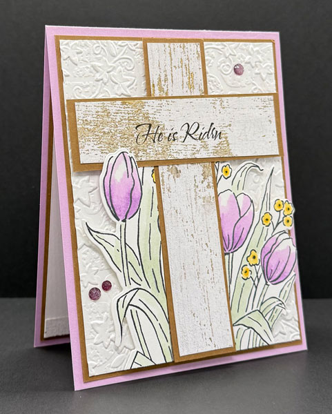Easter is the perfect time to create a card that’s both beautiful and meaningful, and this He is Risen card does just that! Featuring the Mixed Florals stamp set, this design combines delicate purple tulips with a rustic wood-grain cross for a card that truly captures the spirit of the season. I hope it inspires you to create one of your own!