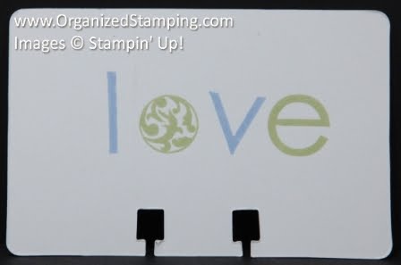 First, find an image that resembles a letter (e.g. flower for O). Stamp that image. Next stamp your word around the image using the image as one of the letters.