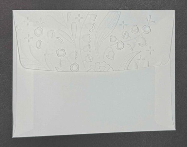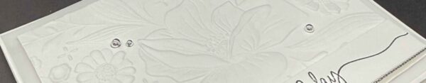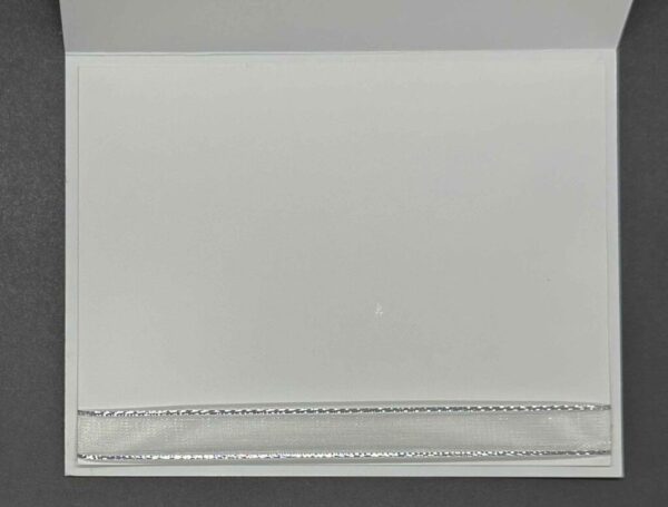 But wait — the details don’t stop on the outside! The inside of the card is just as clean and elegant, with a strip of silver ribbon adding that same touch of sparkle you see on the front. And how fun is that envelope?! I ran it through the Floral Spray 3D Embossing Folder on the flap, so the lucky recipient gets a little “wow moment” before they even open the card.