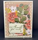 Hello my Crafty Friends! This gorgeous handmade card caught my eye with its layered floral design and touching ‘Can’t Thank You Enough’ sentiment. Featuring coral and pink roses nestled among green foliage, the card creates beautiful dimension through embossed and textured background elements. While it’s based on the Brush with Beauty Designer Series Paper card sample from the Online Store, I added my own personal touches to make the design… Read More »